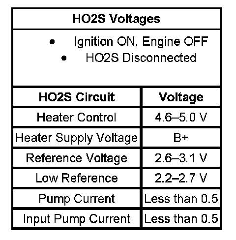 - The table illustrates the typical voltages for the HO2S circuits.