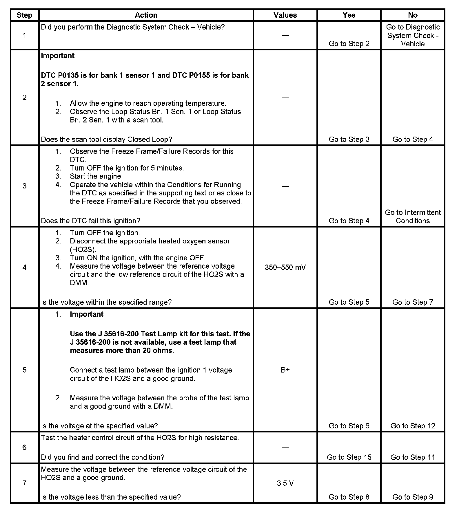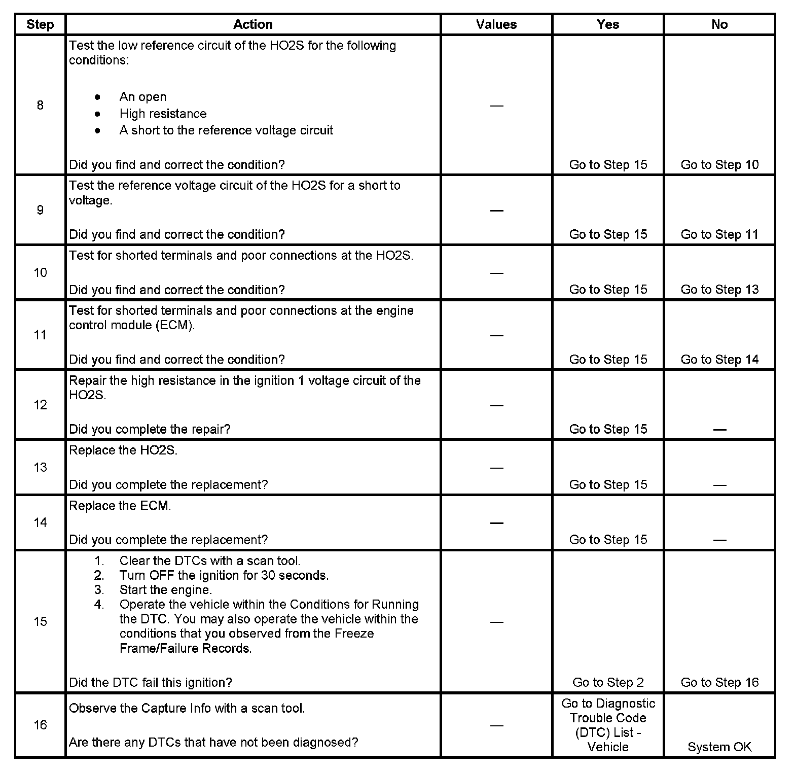 2. This step determines if the condition exists. If there is an HO2S circuit condition, the ECM commands open loop for the applicable sensor.