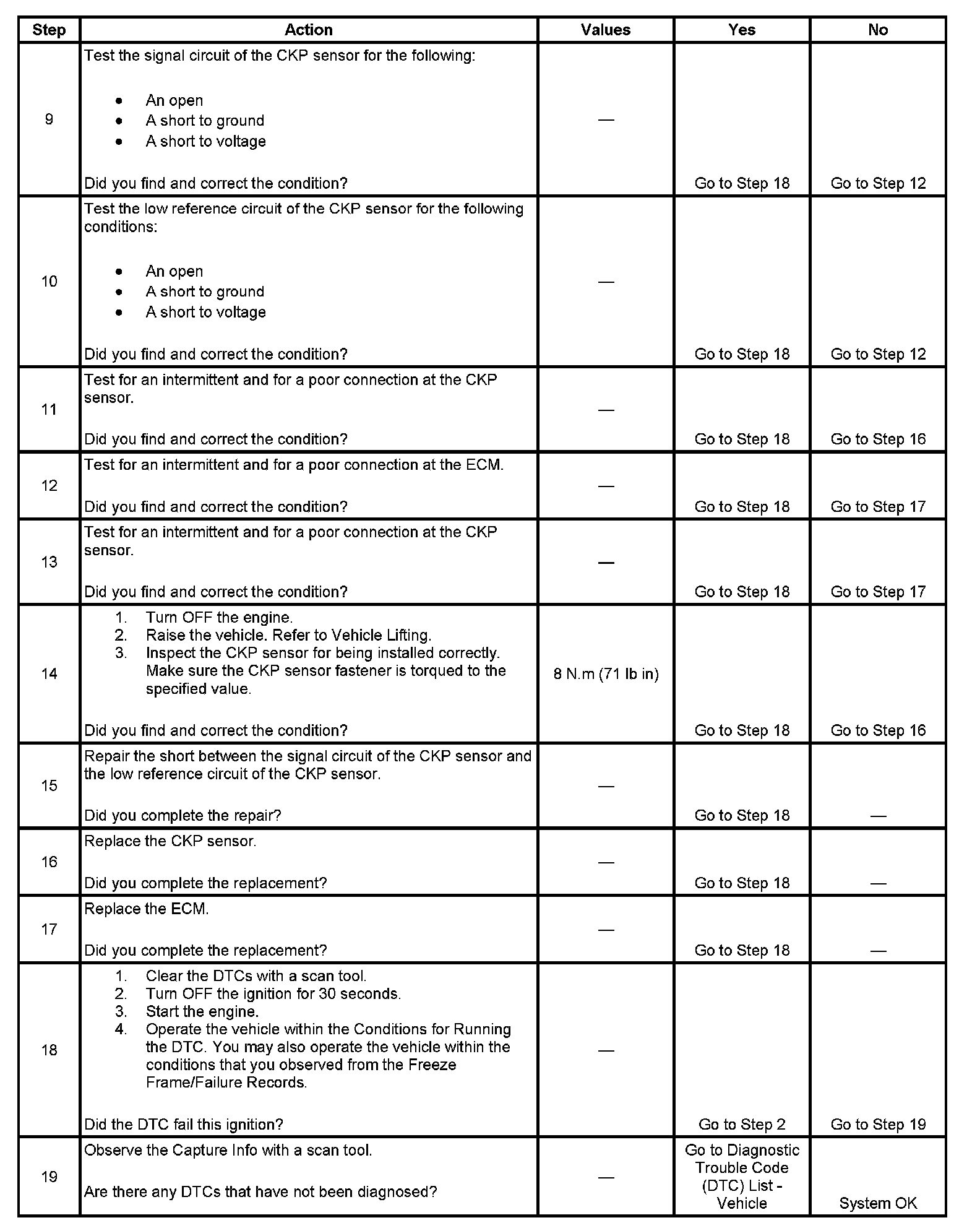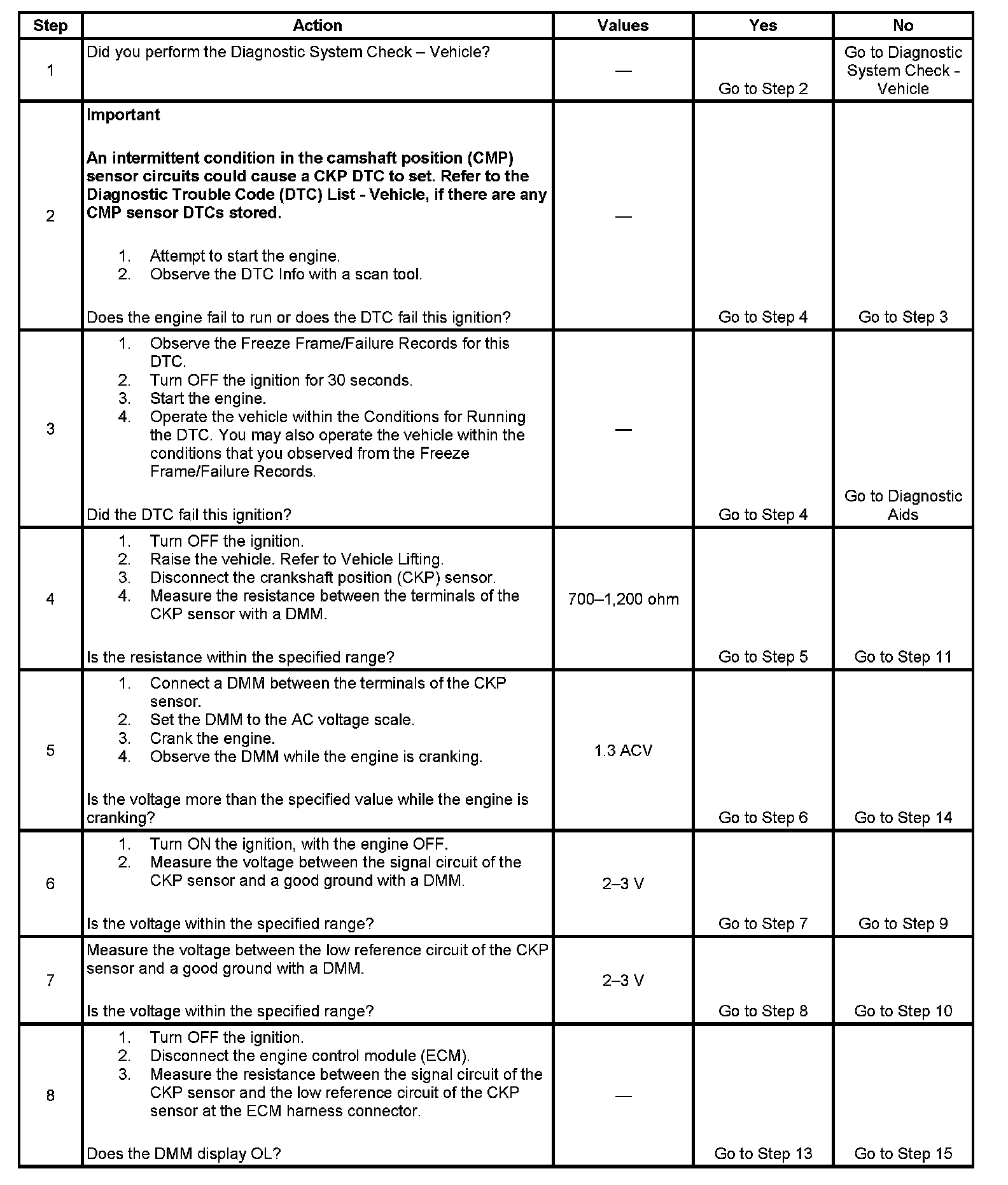 8. This step is testing if the signal circuit and the low reference circuits of the CKP sensor are shorted together. If the DMM displays continuity, the circuits are shorted together.