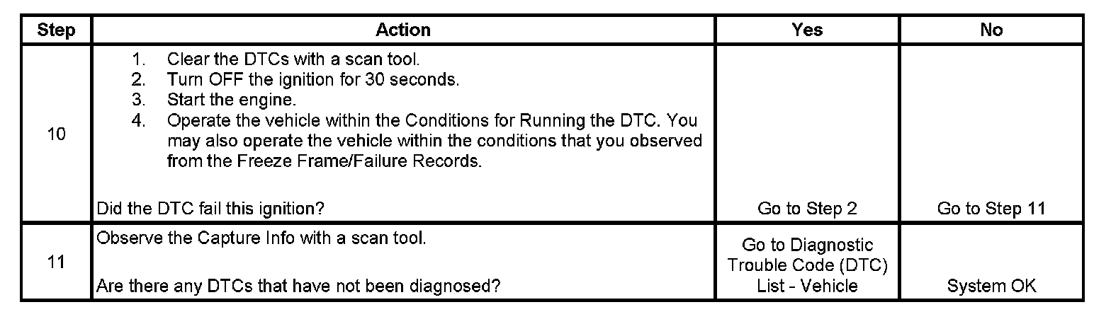 - A current DTC, Last Test Failed, clears when the diagnostic runs and passes.