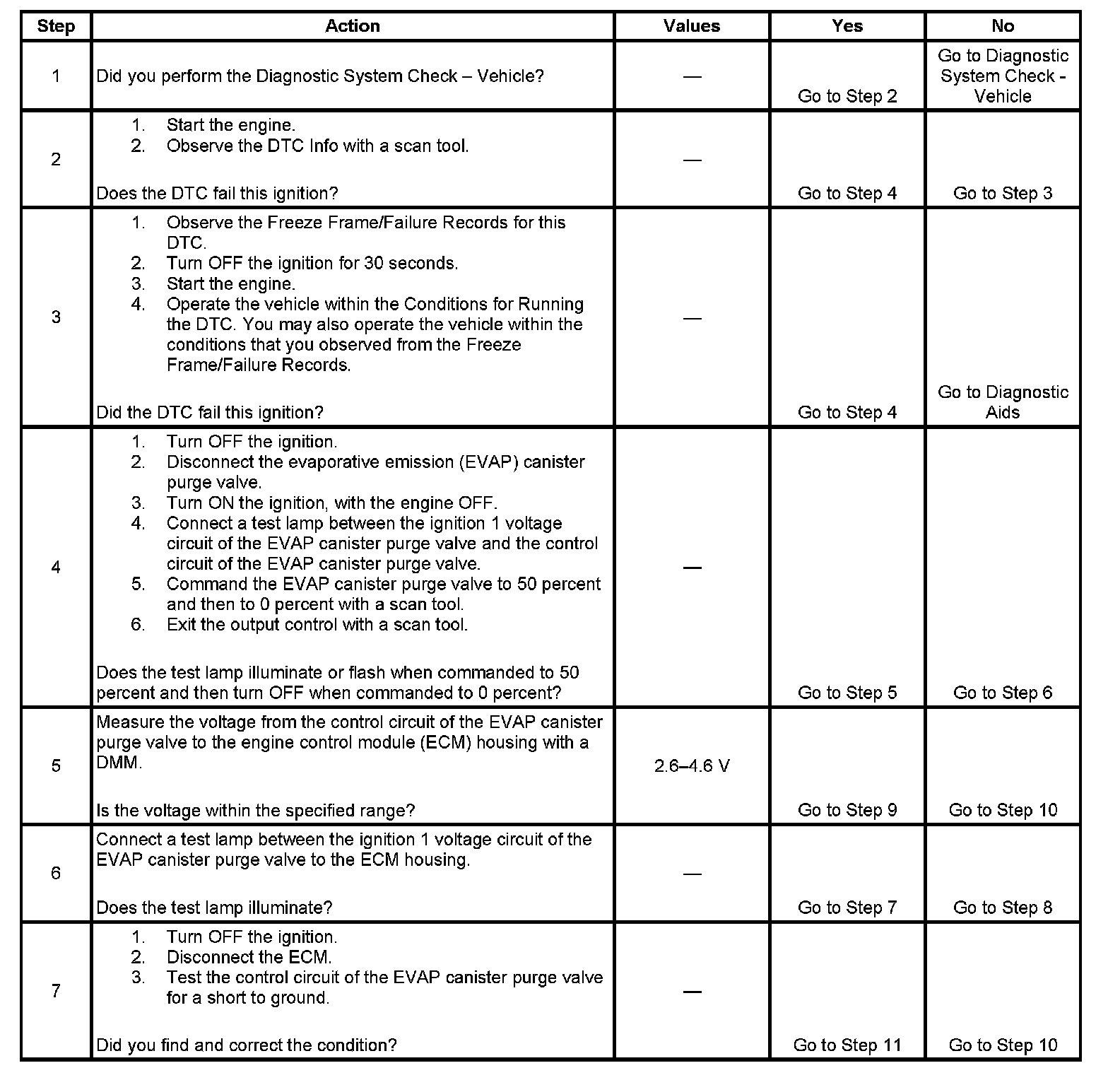 - The ECM detects the voltage on the EVAP canister purge valve control circuit is less than 2.6 volts when the driver is commanded OFF.