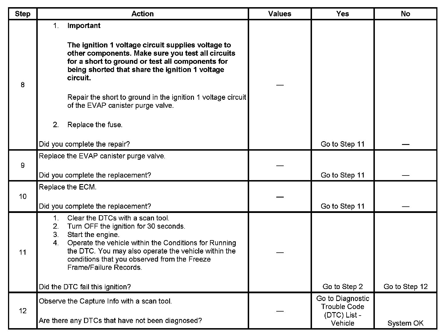 6. This step tests the ignition 1 voltage circuit to the EVAP canister purge valve.