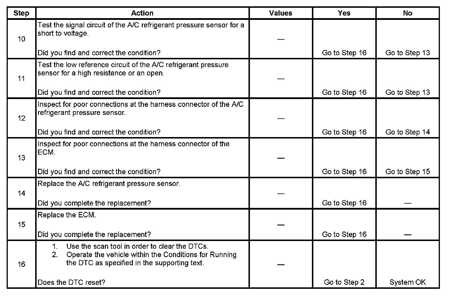 - The ECM will report a value of 0 kPa to the HVAC control module.