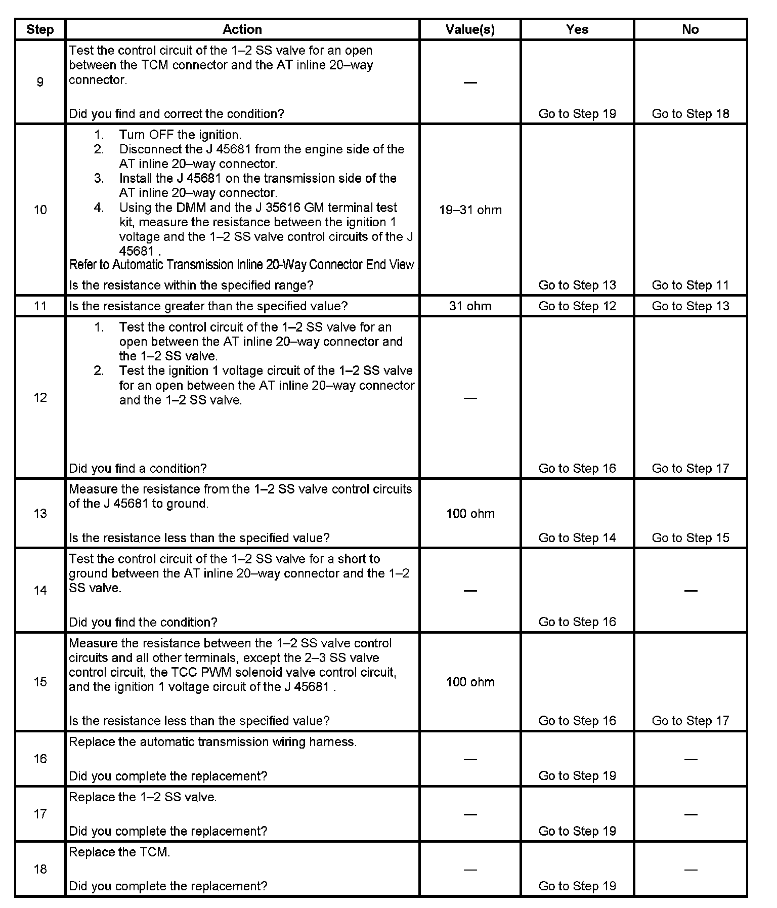 DTC P0973 1-2 Shift Solenoid (SS) Control Circuit Low Voltage