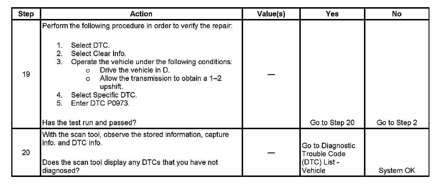 ^ The TCM stores DTC P0973 in TCM history.