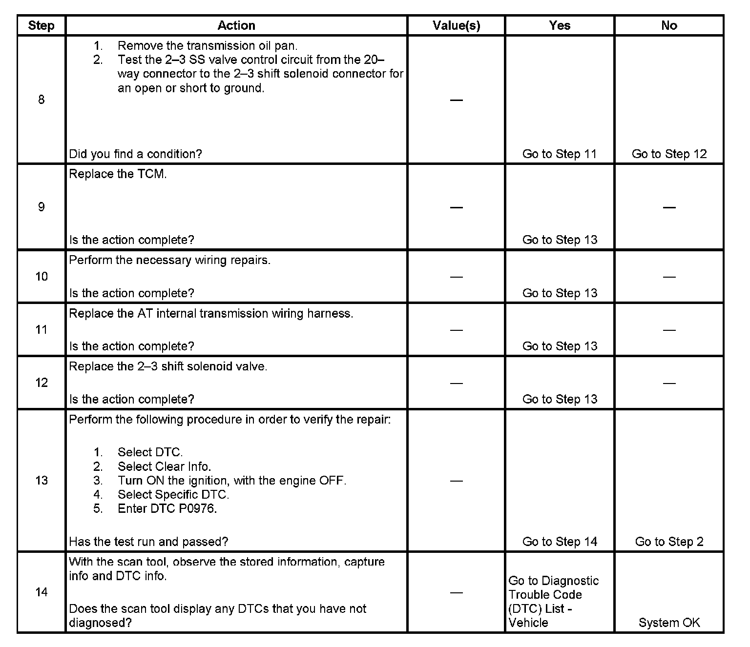 DTC P0976 2-3 Shift Solenoid (SS) Control Circuit Low Voltage