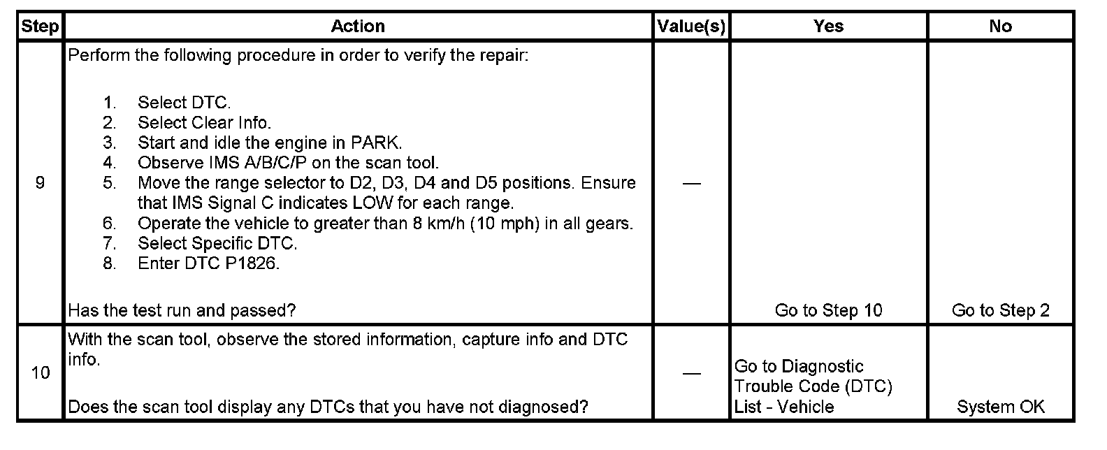 If the TCM detects switch Signal C is high while the vehicle is being driven in a forward gear, then DTC P1826 sets. DTC P1826 is a type B DTC.