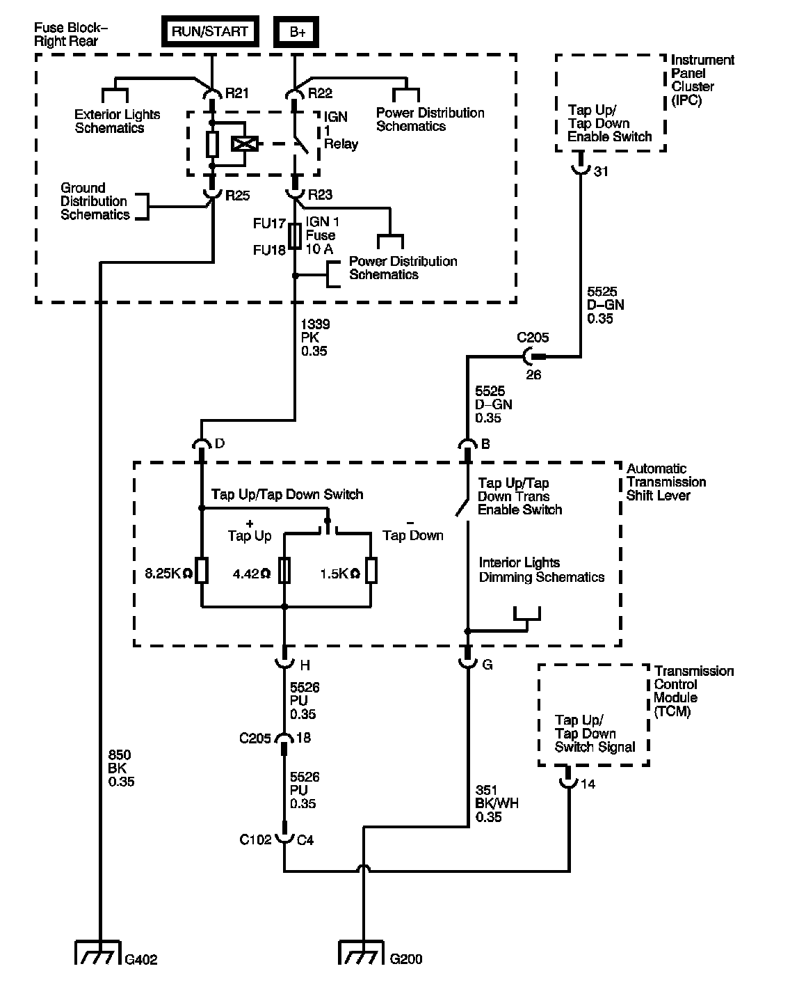 The TAP Shift system allows the driver to manually shift gears by using the Upshift and Downshift positions located on the automatic transmission shift Lever. Pushing the lever to the Upshift position will command an upshift and pushing the lever to the Downshift position will command a downshift. The TAP Shift system is activated when the gear selector is in the manual, M, position and is deactivated in all other positions.