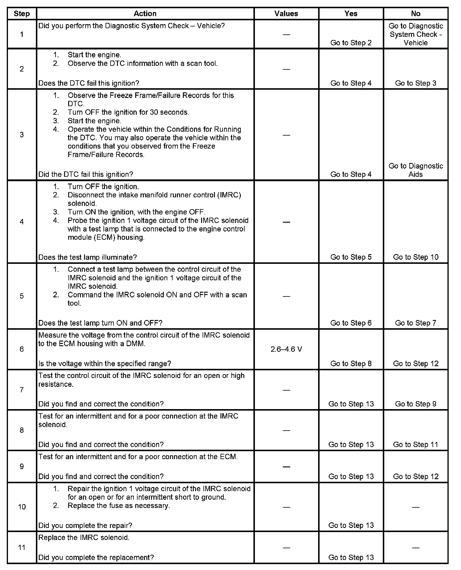 - The ECM detects the control circuit voltage for the IMRC solenoid is between 2.6-4.6 volts when the driver is commanded OFF.