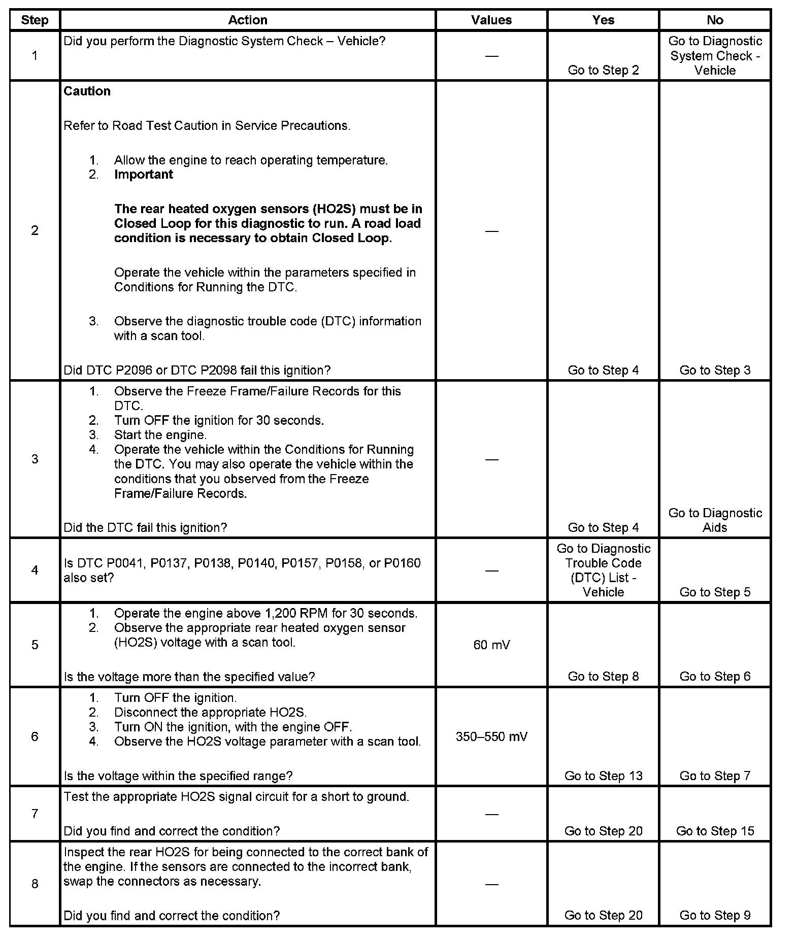 - Before the ECM can report DTC P2096 or P2098 failed, DTCs P0030, P0031, P0032, P0041, P0050, P0051, P0052, P0101, P0131, P0132, P0135, P0137, P0138, P0140, P0141, P0151, P0152, P0155, P0157, P0158, P0160, P0161, P2231, P2234, P2237, P2240, P2243, P2247, P2251, P2254, P2270, P2271, P2273, P2626, and P2629 must run and pass.