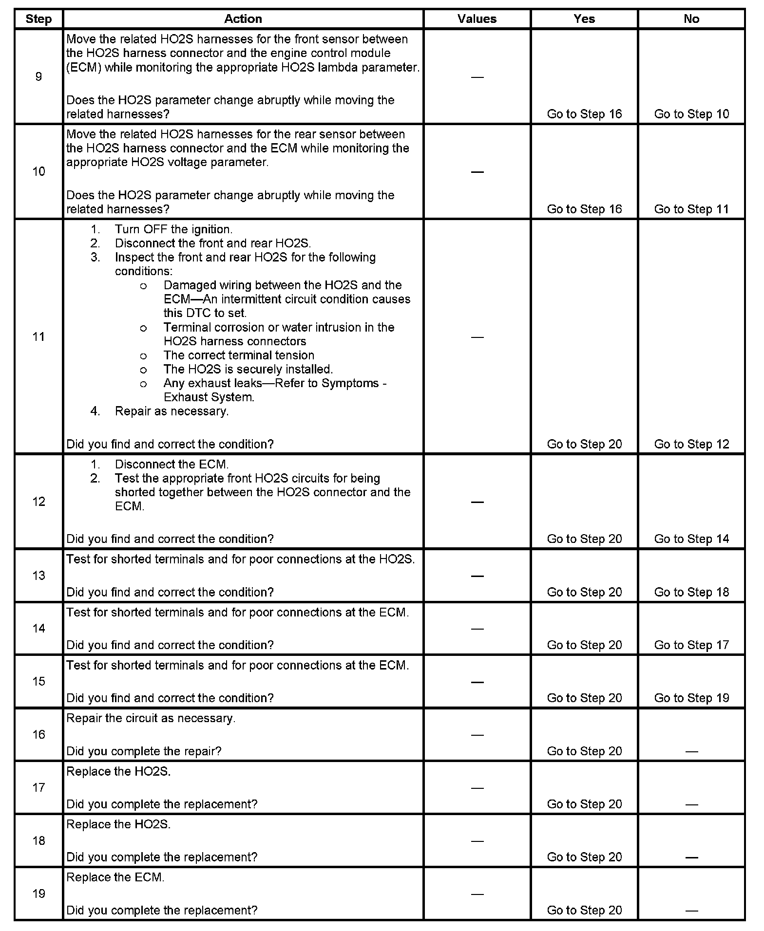 9. This step is testing for an intermittent circuit condition. Thoroughly inspect the HO2S circuits for an intermittent circuit condition.