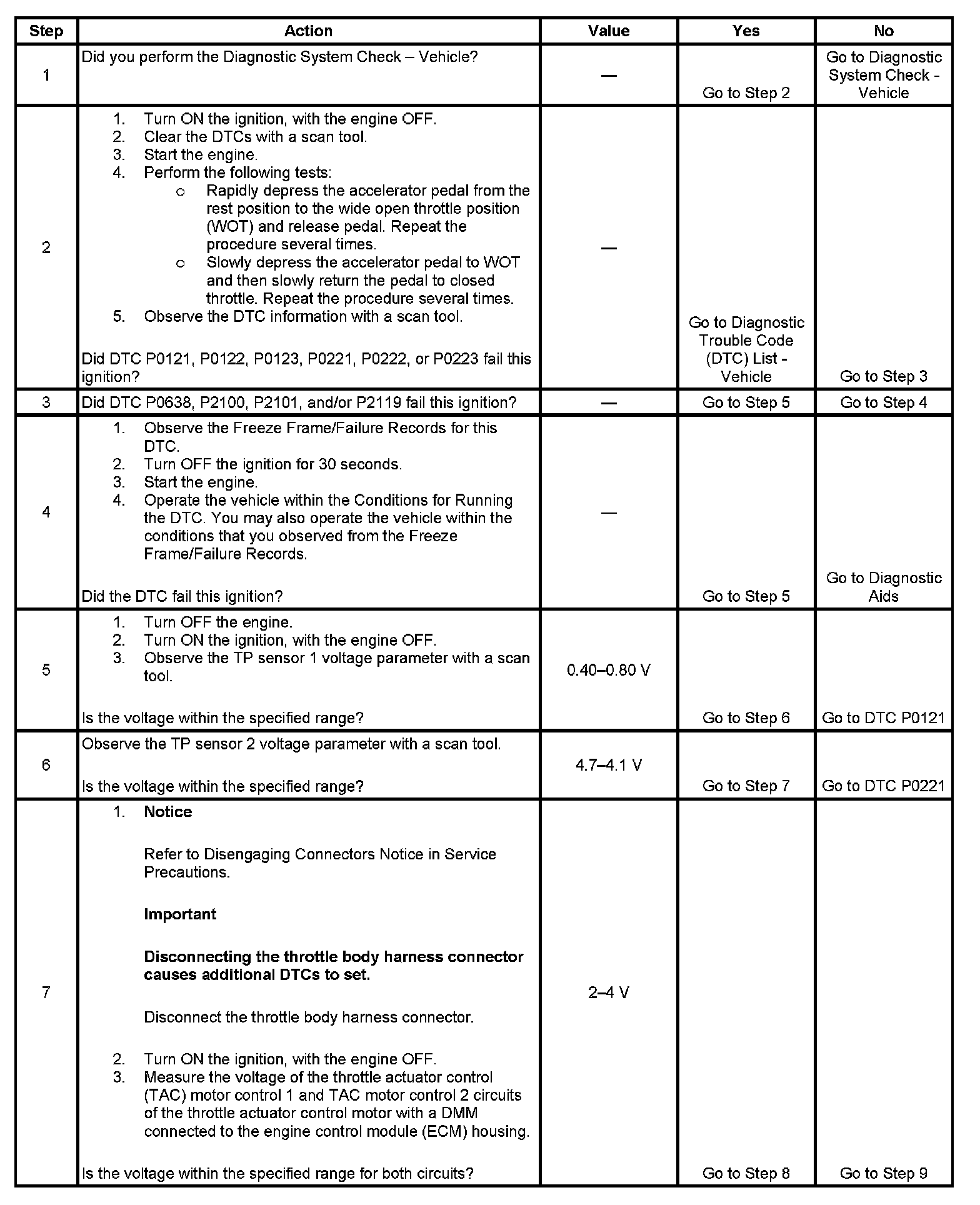 2. This step determines if the condition exists. A TP sensor DTC may cause this DTC to set.