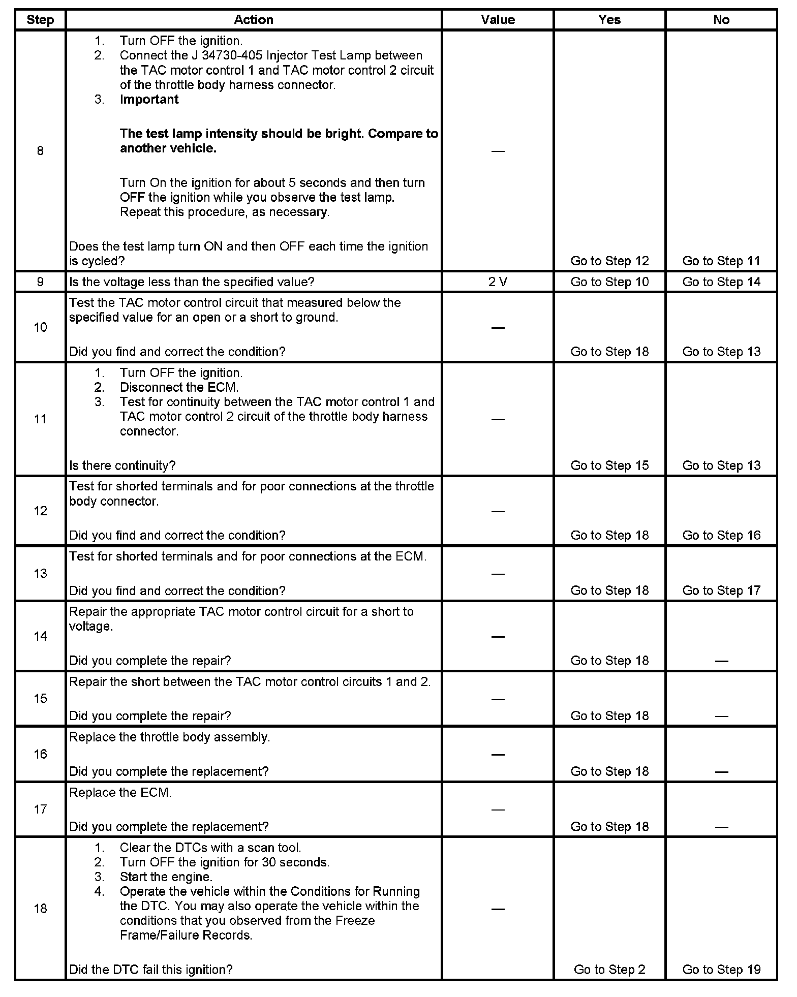 - The ECM detects the output driver for the TAC motor does not deactivate when commanded OFF.