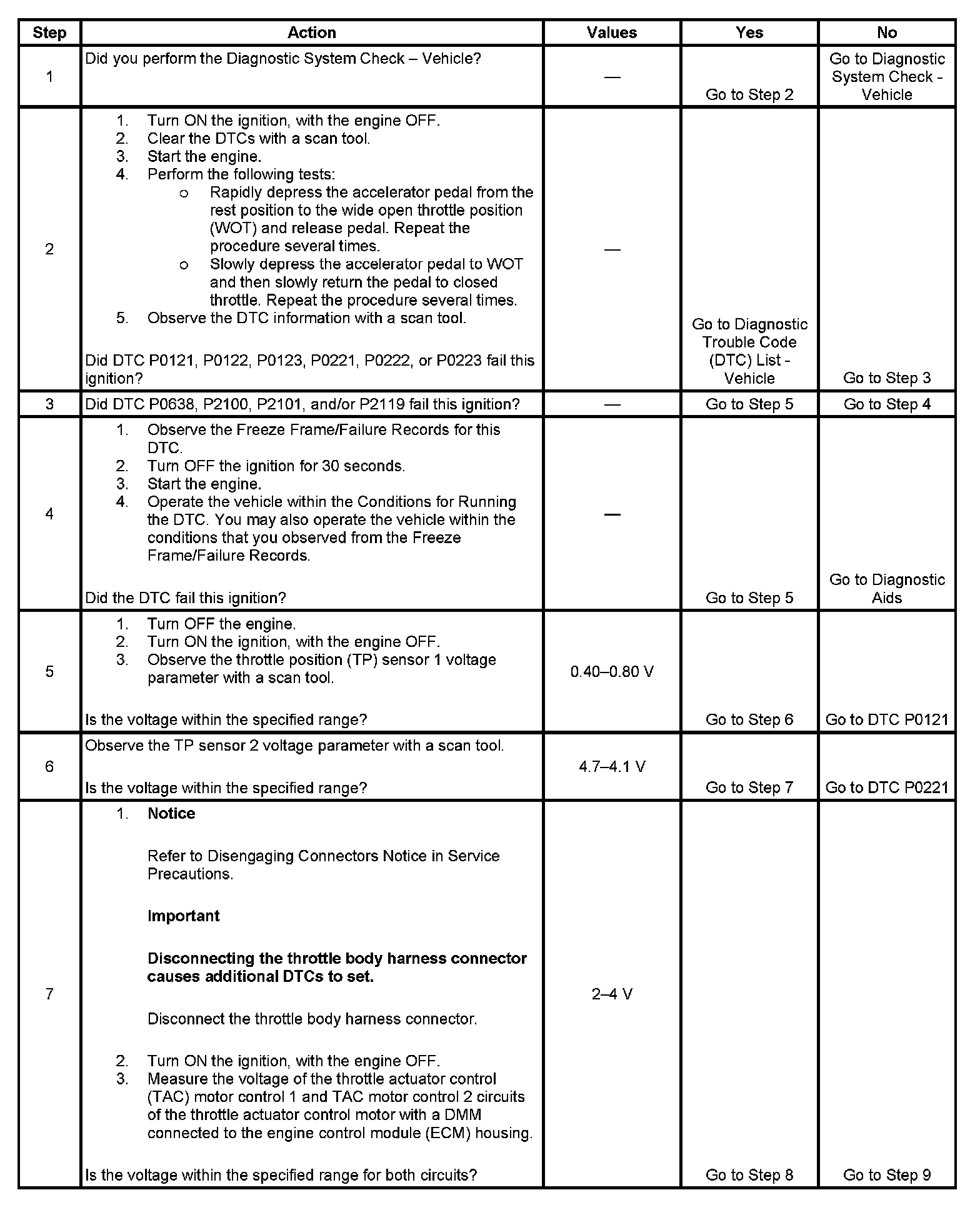 3. Depending on the condition, DTC P0638, P2100, P2101, and/or P2119 may set individually or together.