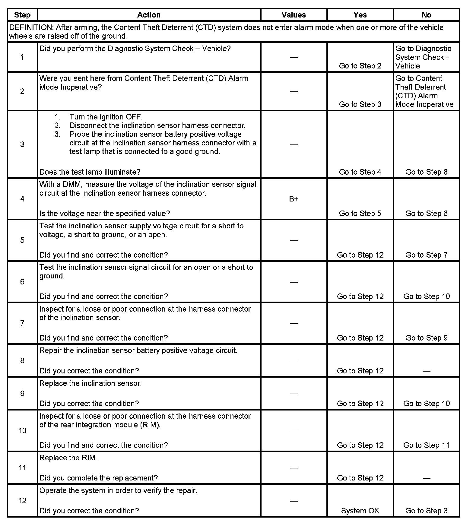 IMPORTANT: Before attempting to diagnose the inclination sensor, ensure that the Inclination Sensor Part A and Part B are enabled in the Dash Integration Module (DIM) Set Options menu.