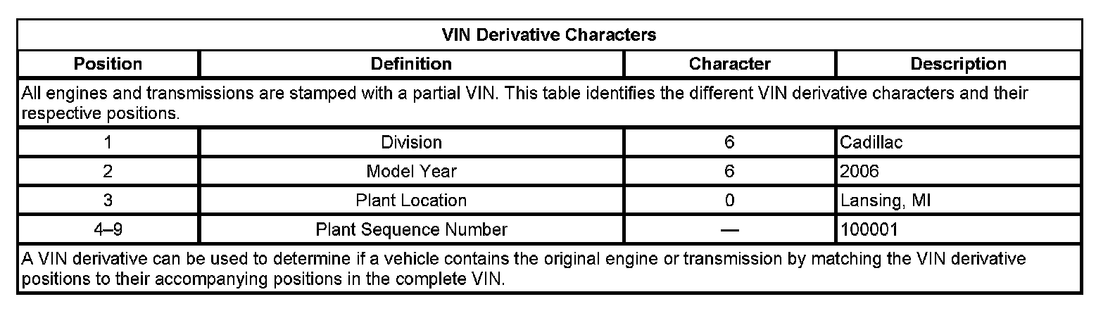 VIN Derivative Characters: