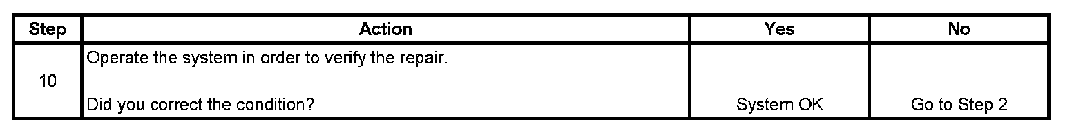 The numbers below refer to the step numbers on the diagnostic table.