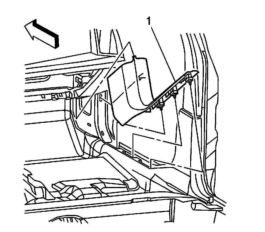 2. Align the front carpet retainer (1) with the slots in the rocker panel.