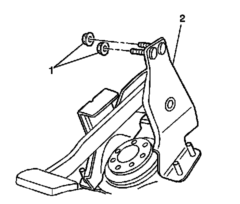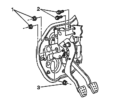 3. On vehicles with a manual shift transmission, loosen the nuts (2) on the pedal bracket.