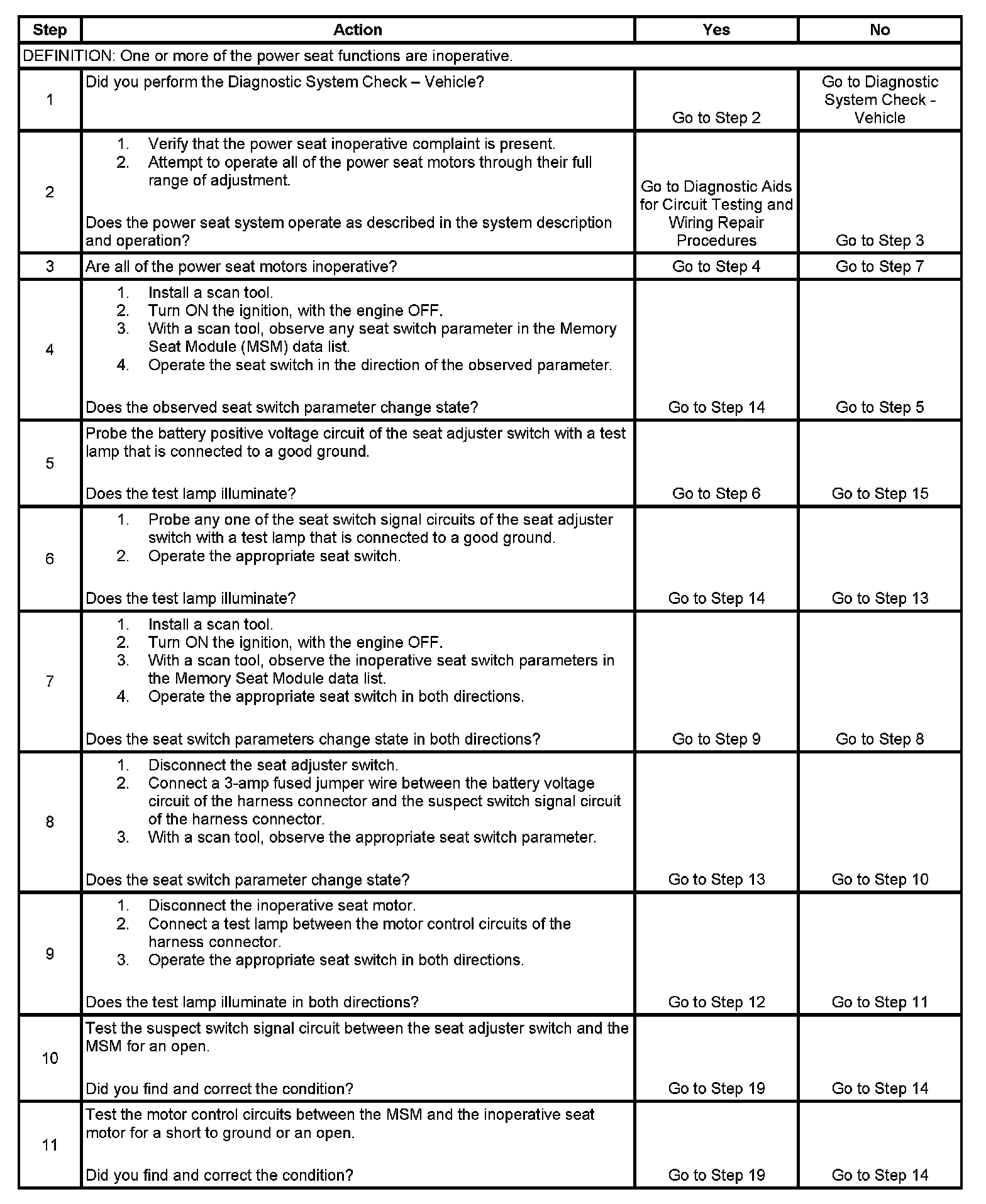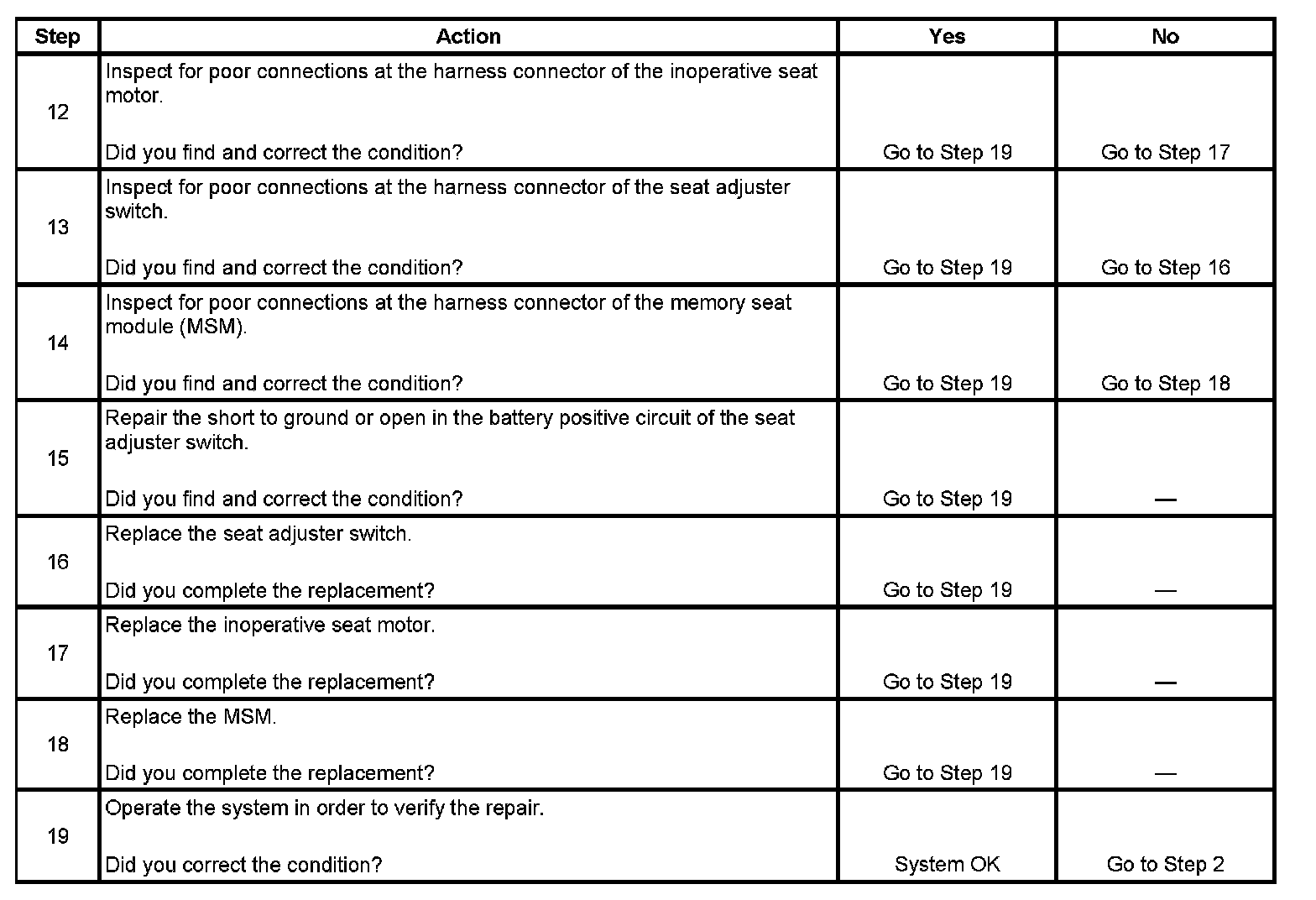 8. This step tests the integrity of the signal circuits of the seat adjuster switch. If the fuse in the jumper wire opens when you perform this test, a short to ground may have occurred.