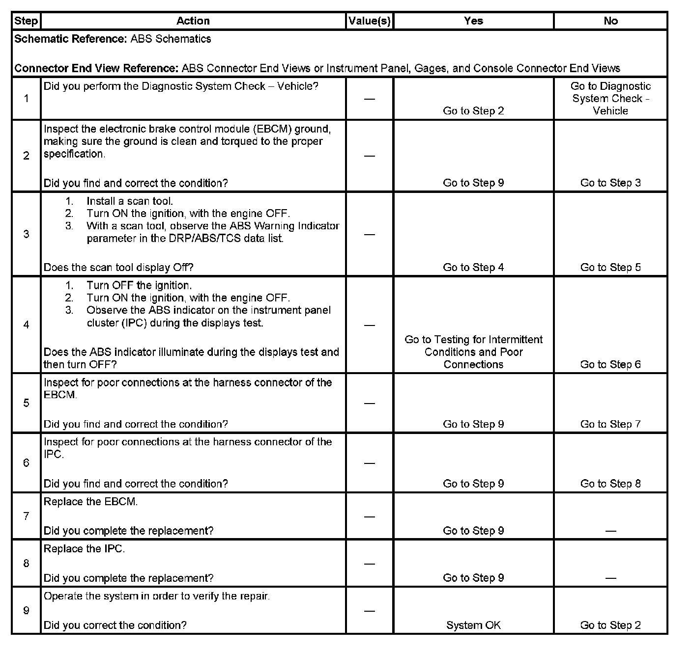 4. This step ensures that the instrument panel cluster (IPC) can operate the ABS indicator.
