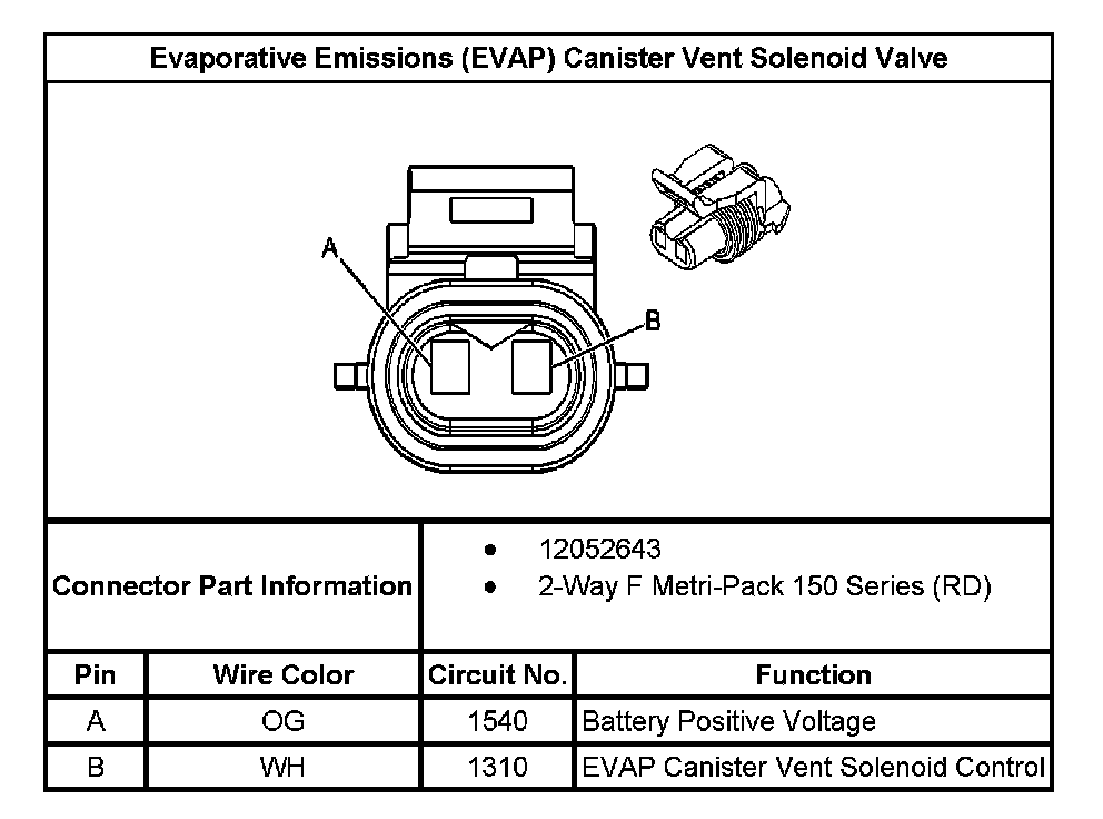 Evaporative Emissions (EVAP) Canister Vent Solenoid Valve: