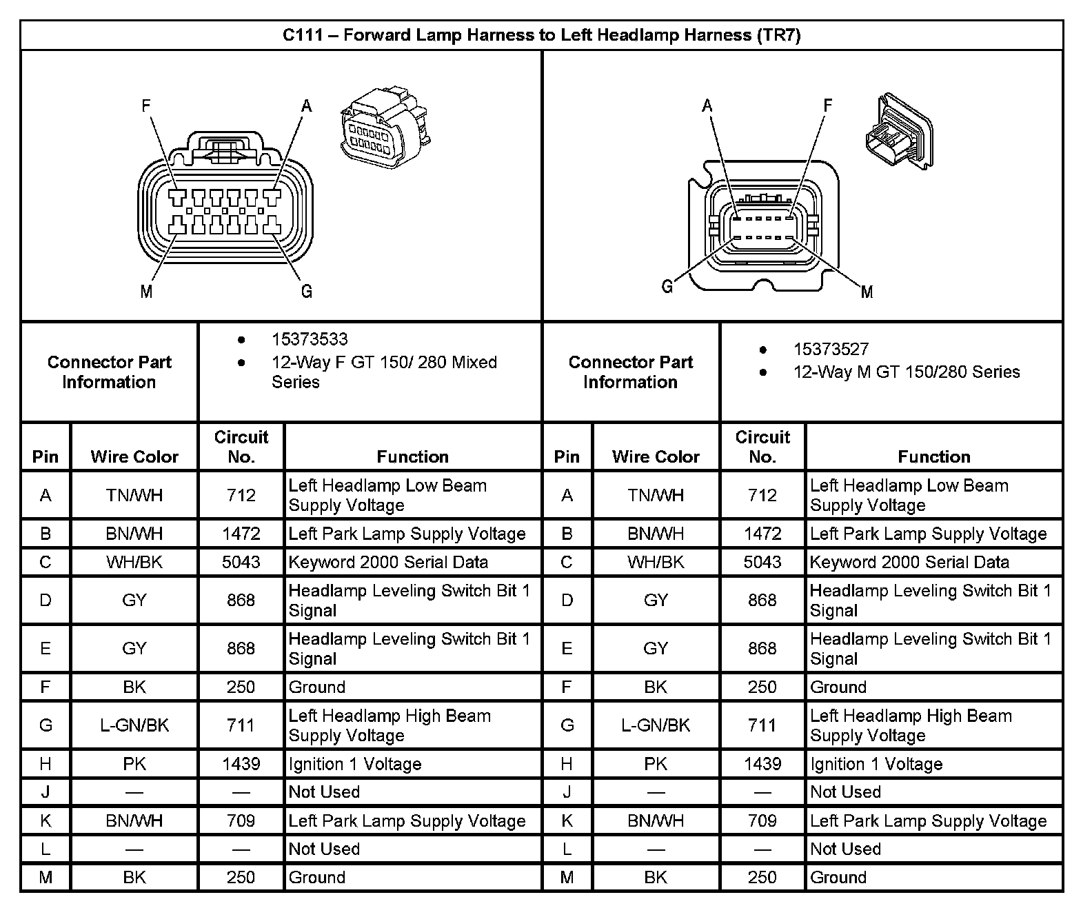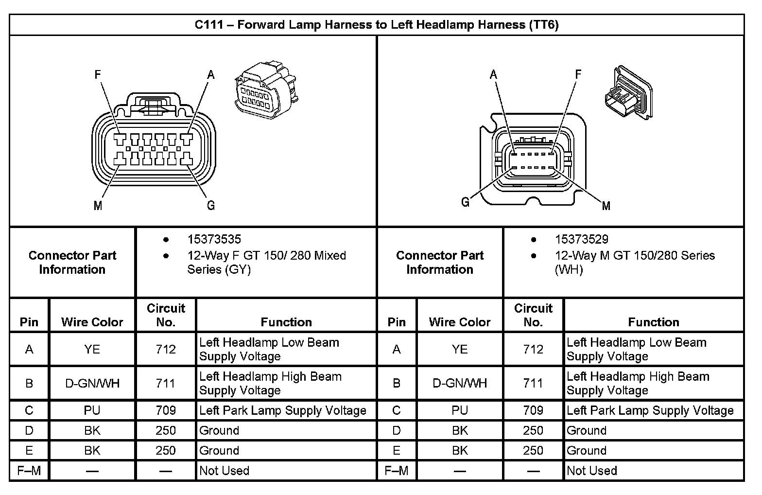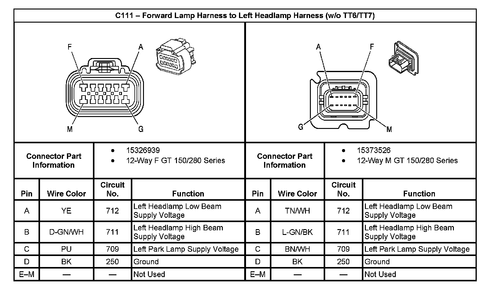 C111 - Forward Lamp Harness To Left Headlamp Harness (With RPO Code TT6):