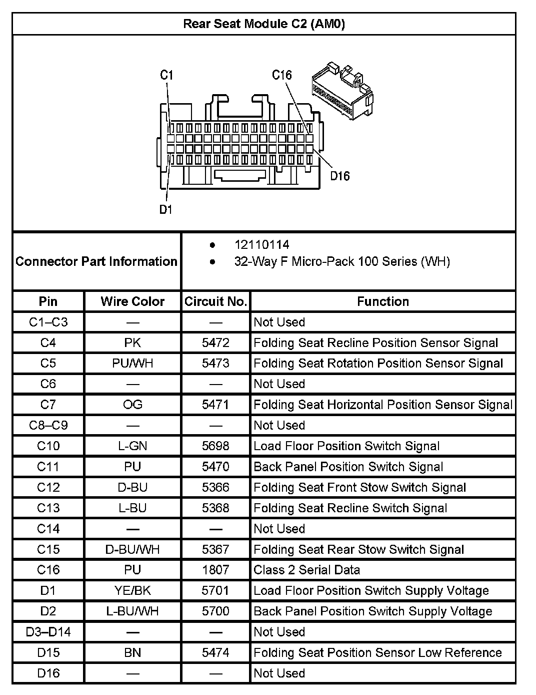 Rear Seat Module C2 (With RPO Code AM0):