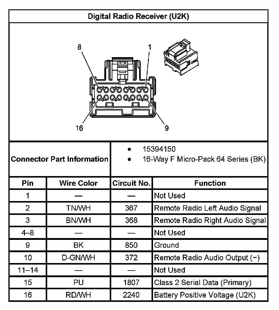 Digital Radio Receiver (With RPO Code U2K):