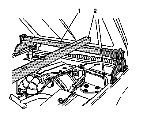 4. Loosely install the J28467-501 (1) to the ends of the strut tower tube J28467-3 (2).