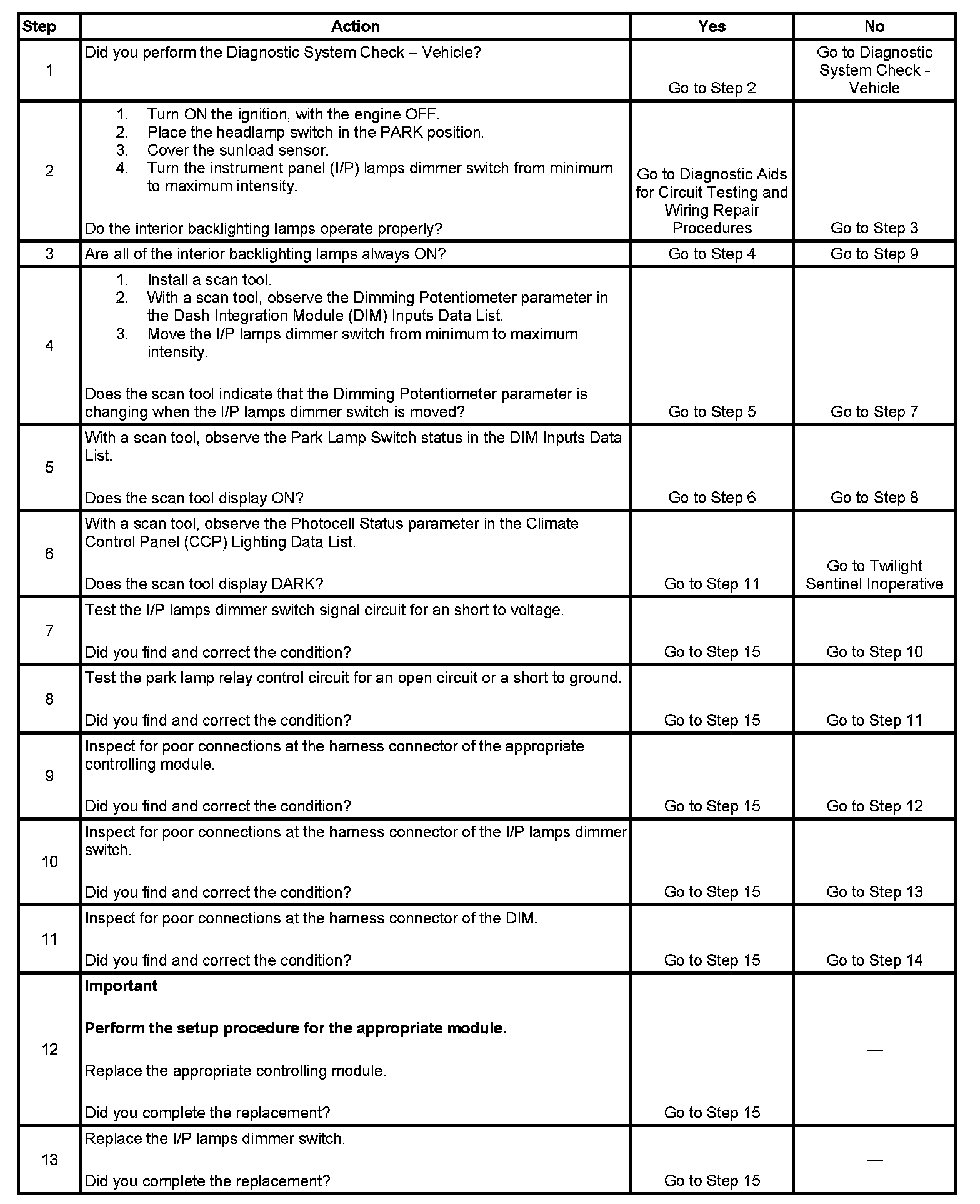 Interior Backlighting Does Not Dim