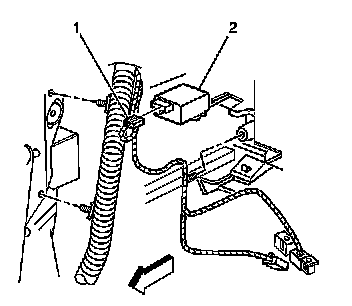 1. Connect the electrical connector (1) to the flasher module (2).