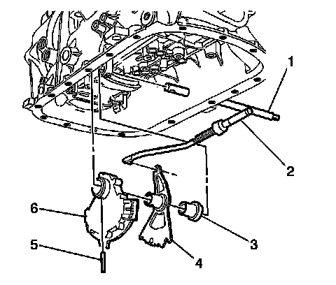 1. Install the manual shift shaft position switch (6), the manual shift shaft detent lever (4), the manual shift shaft assembly spacer (3), and the park pawl actuator (2) as an assembly. It may be necessary to push up on the park pawl in order to fully insert the park pawl actuator (2).