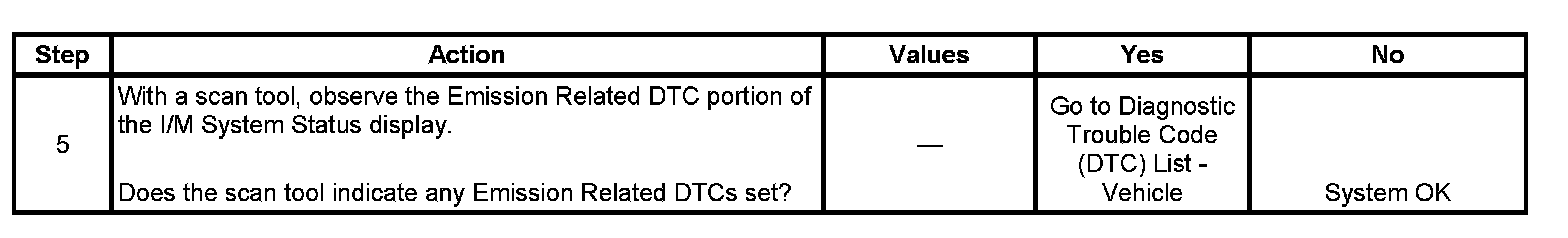 5. The I/M System Status only reports on whether or not a diagnostic has run, not what the outcome of the test was. If any emission related DTC sets after the tests are complete, the DTC will require diagnosis.