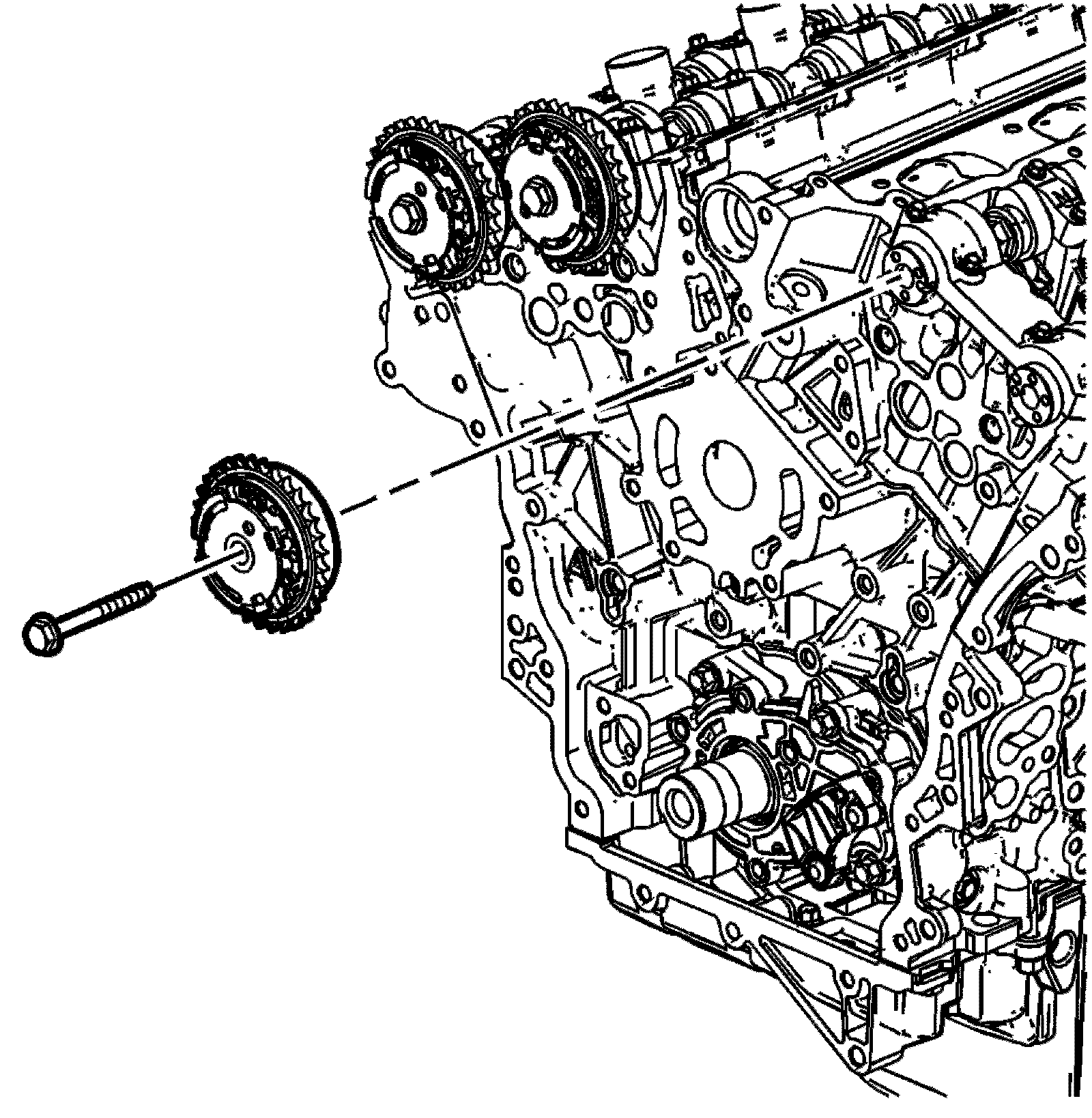 1. Remove the left exhaust camshaft actuator. Camshaft Position Actuator Replacement - Bank 2 (Left Side) Exhaust