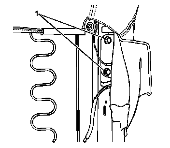 6. Install the 2 bolts (1) to the inflatable restraint side impact module.