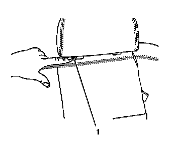 1. Push in on the release tab located on the head restraint retainer (1) to remove the head restraint.