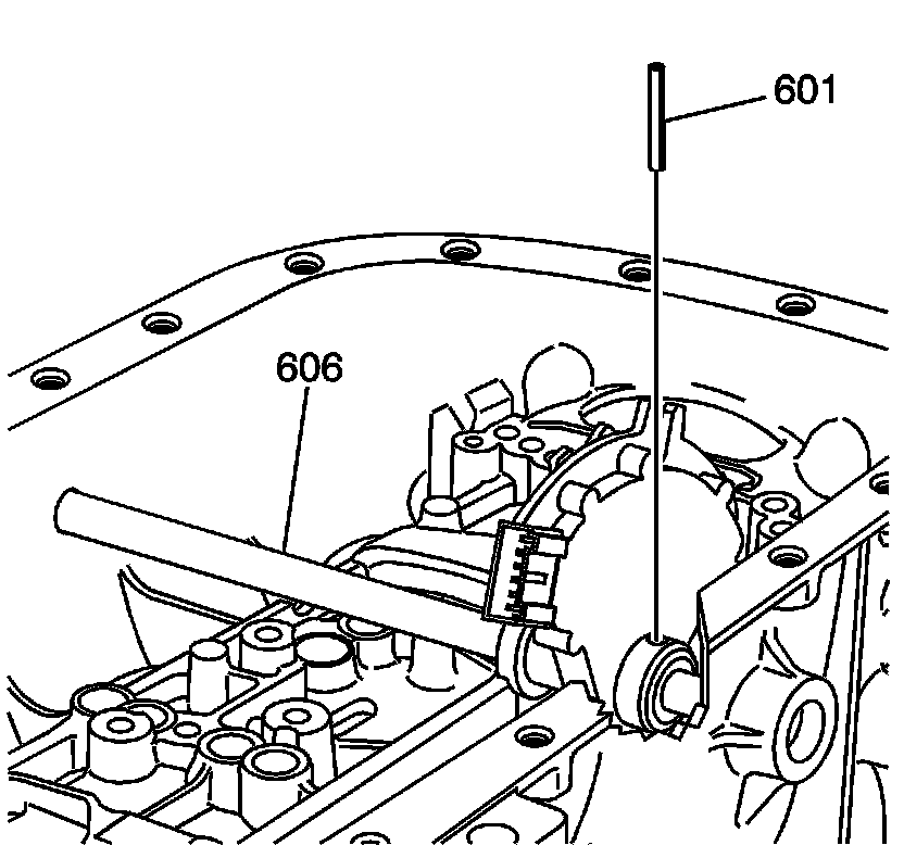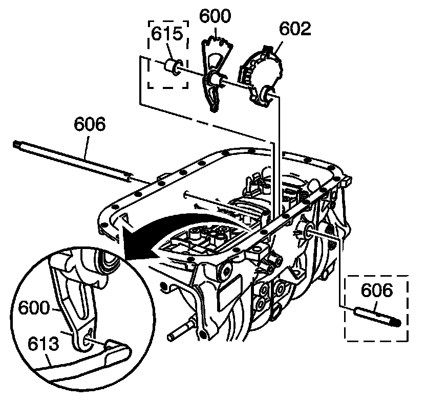 10. Install the manual shaft pin (601) into the manual shift shaft (606).