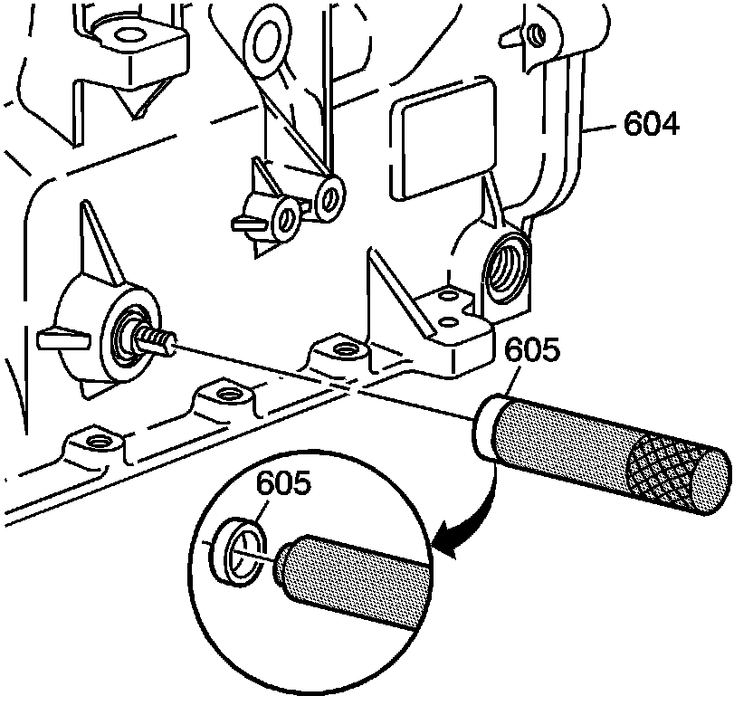 12. Use a J 44767 to install the NEW manual shaft seal (605) into the case (604).