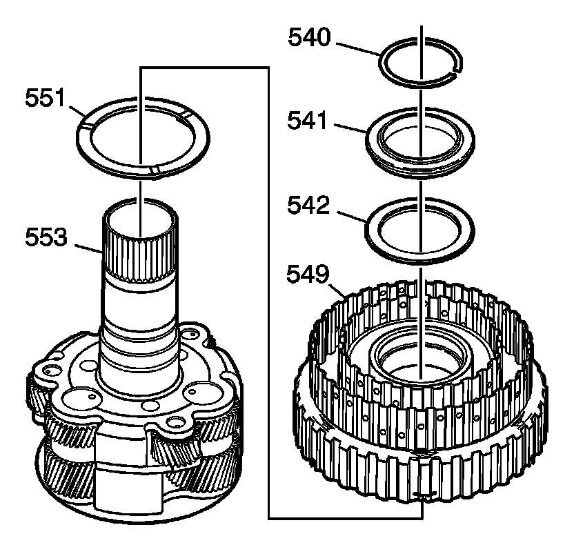 5. Remove the reaction internal gear flange washer (551).