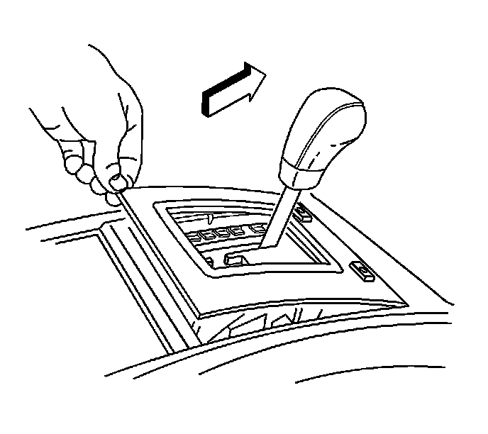 5. Remove the shift control trim plate by lifting the rear of the trim plate up. Pull the plate rearward in order to disengage the front retaining tabs.