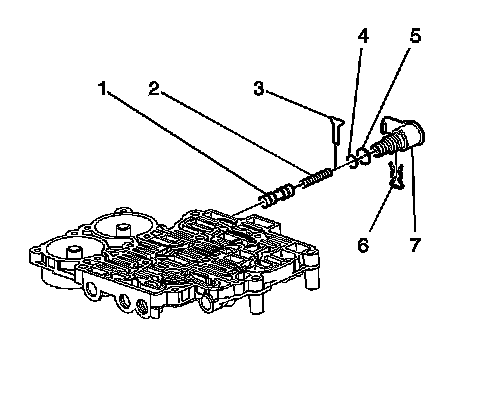 4. Remove the 1-2 shift solenoid (7) from the control valve body.