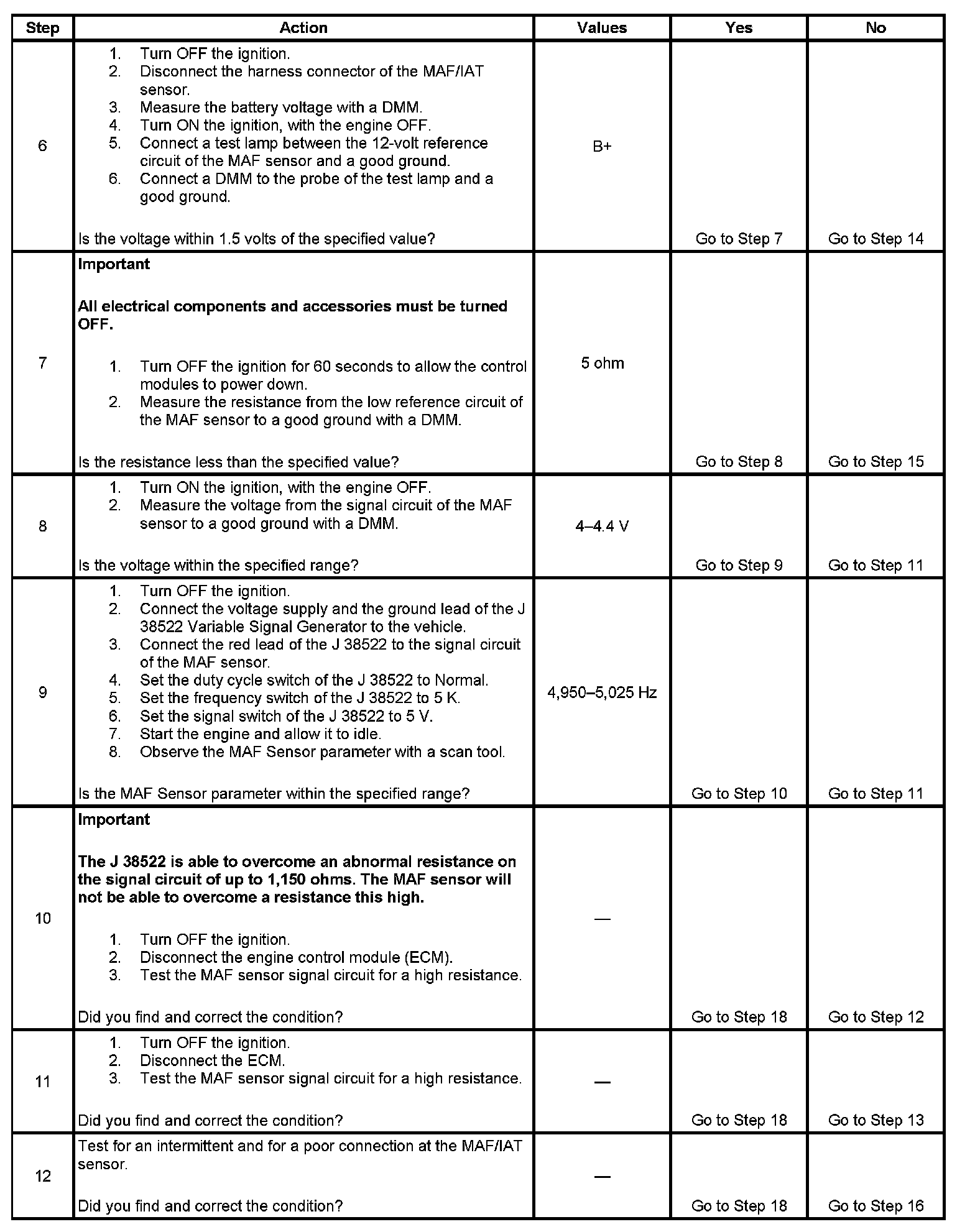 9. This step will determine if the ECM can accurately process the frequency signal that it receives from the MAF sensor.