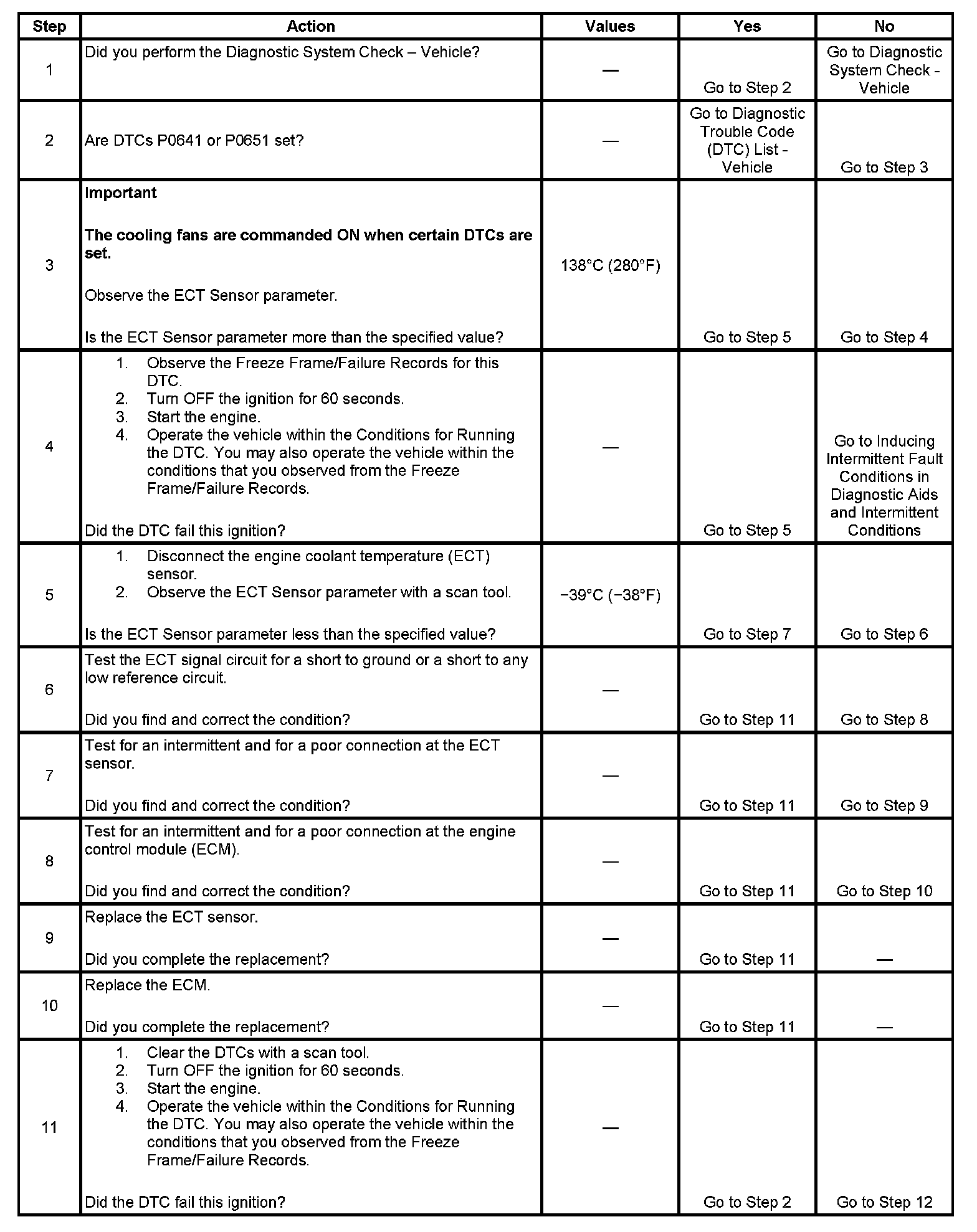 The ECM detects that the ECT Sensor parameter is more than 138°C (280°F) for less than 1 second.
