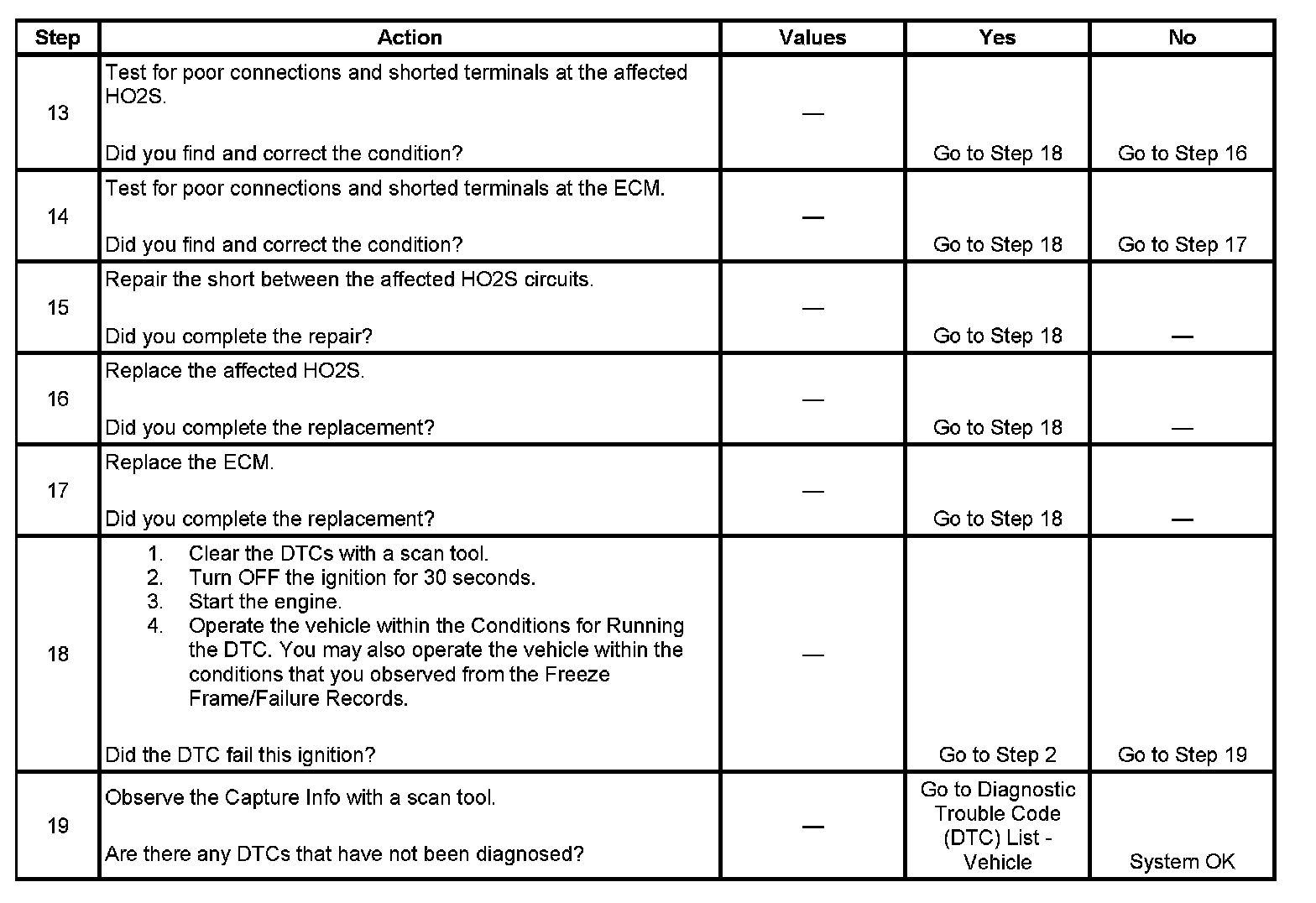 - DTCs P0030, P0031, P0032, P0036, P0037, P0038, P0050, P0051, P0052, P0056, P0057, P0058, P0132, P0133, P0135, P0137, P0138, P0139, P0140, P0141, P0152, P0153, P0155, P0157, P0158, P0159, P0160, P0161, P1137, P1138, P1157, P1158, P2231, P2234, P2237, P2240, P2243, P2247, P2251, P2254, P2626, P2629, P167A, P167B are not set.