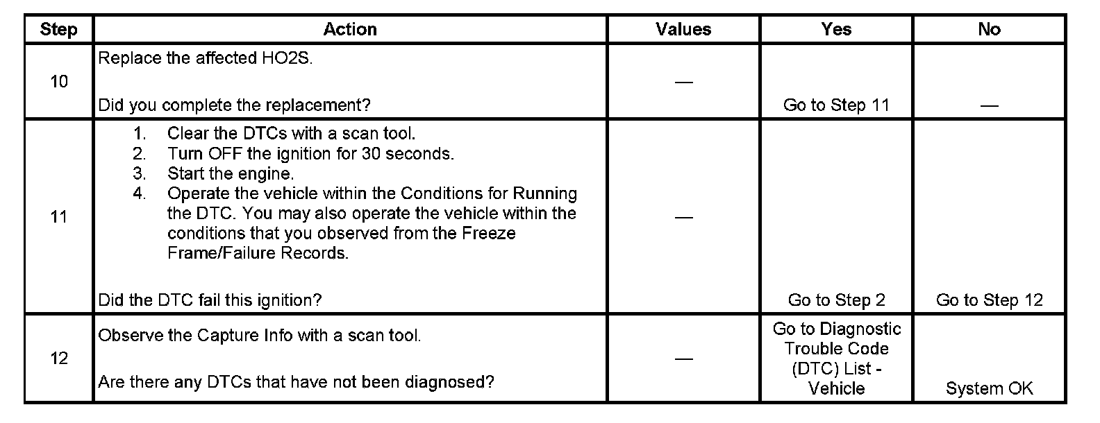 - DTCs P0030, P0031, P0032, P0036, P0037, P0038, P0050, P0051, P0052, P0056, P0057, P0058, P0101, P0102, P0103, P0106, P0107, P0108, P0131, P0132, P0133, P0135, P0137, P0138, P0139, P0140, P0141, P0151, P0152, P0153, P0155, P0157, P0158, P0159, P0160, P0161, P1137, P1138, P1157, P1158, P2231, P2234, P2237, P2240, P2243, P2247, P2251, P2254, P2626, P2629, are not set.