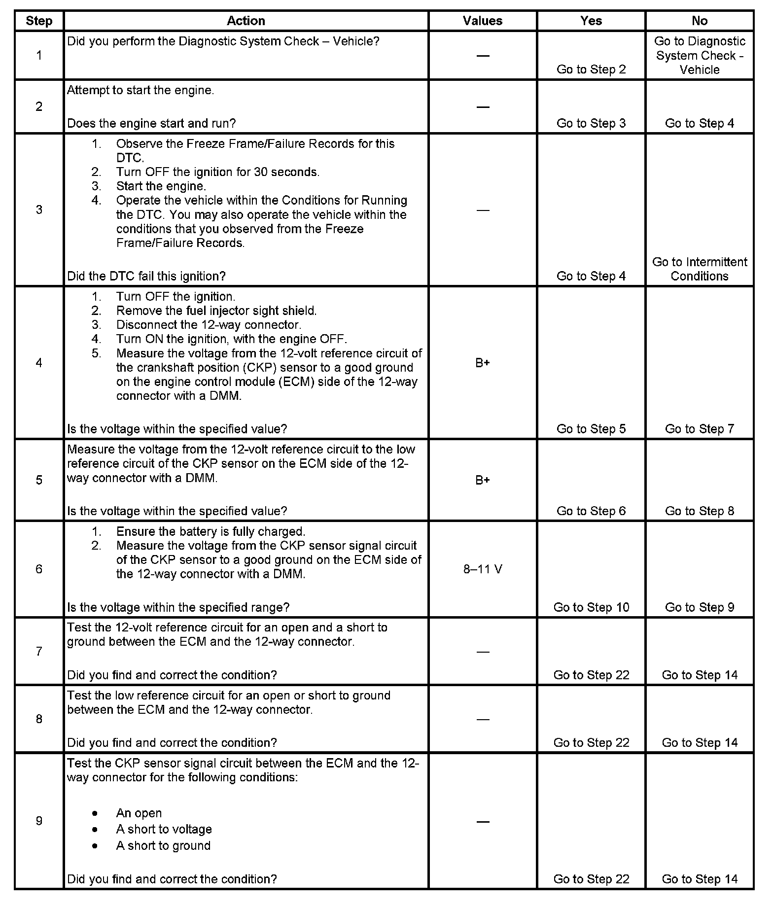 The ECM does not detect a signal from the CKP sensor for more than 1 second.