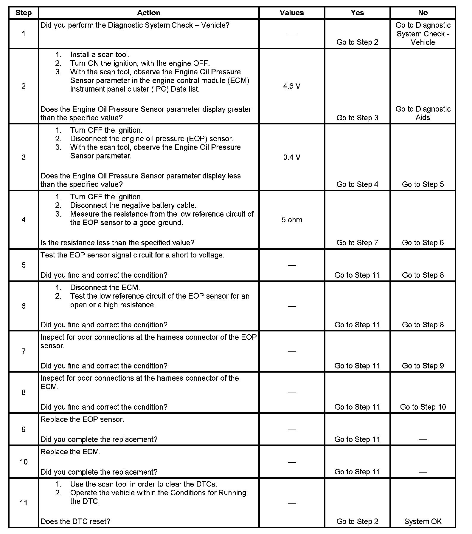- The ECM detects that the EOP sensor signal circuit is greater than 4.6 volts.