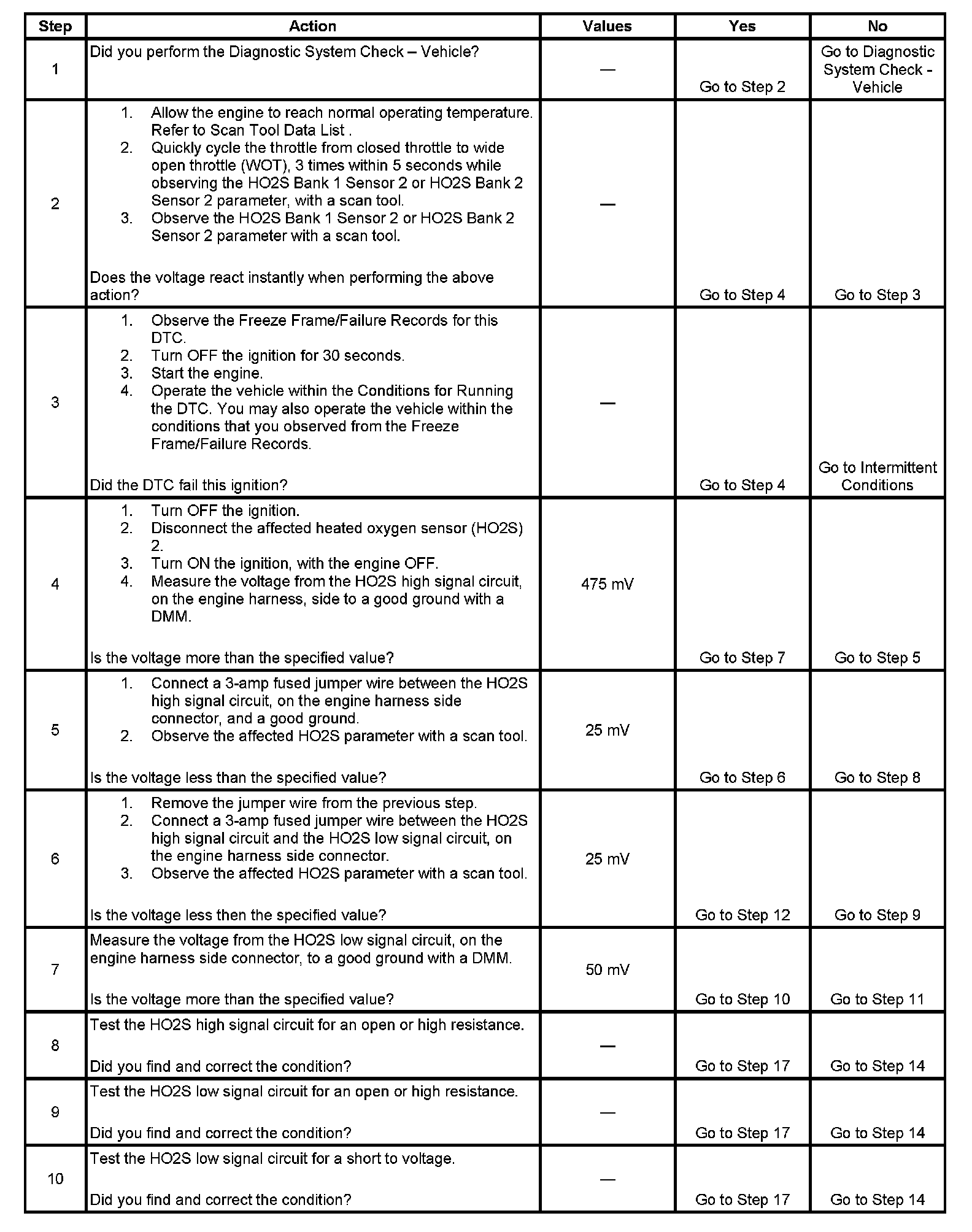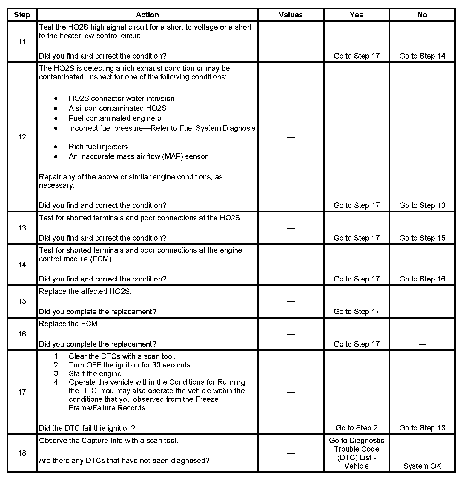 The affected HO2S voltage parameter is more than 30 mV for more than 5 seconds during a decel fuel cut-off condition.
