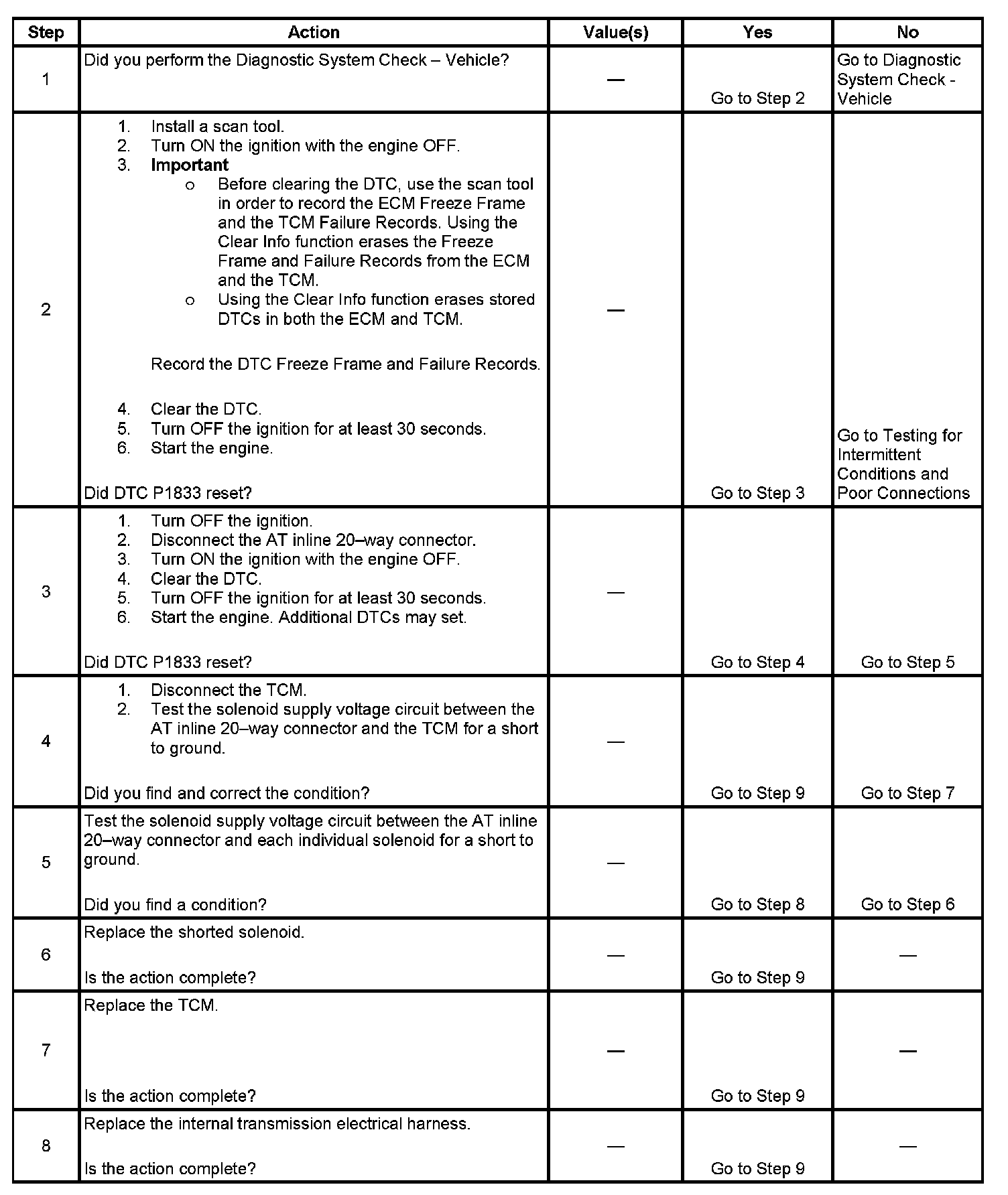 DTC P1833 Torque Converter Clutch (TCC)/Shift Solenoid (SS) Control Circuit Low Voltage
